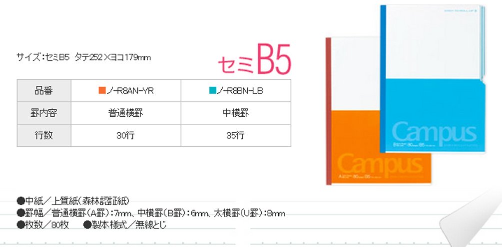 Kokuyo Campus Paracuruno Slanted Page Notebook - Semi B5 (7 X 9.8 ) - 30 Lines - 80 Sheets - Orange