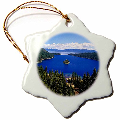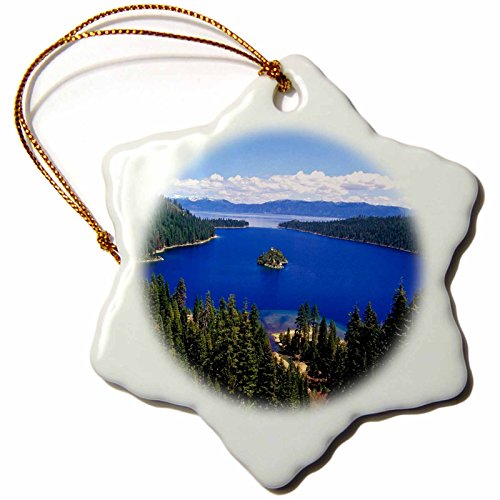 3dRose orn_57609_1 Lake Tahoe California Snowflake Ornament, Porcelain, 3-Inch