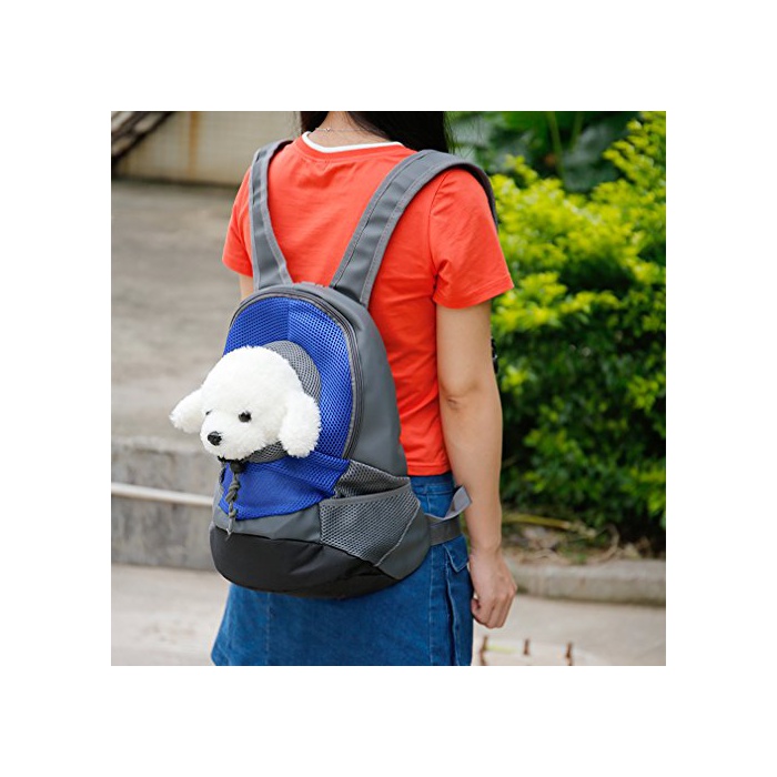 Auralum 소형 중형 애완동물용 캐리 백 환기성 좋은 메쉬 소재 숄더백 배낭 (S,블루)