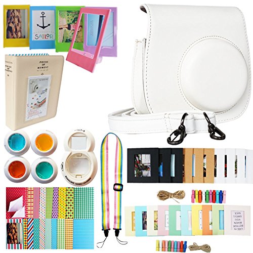 Blummy Instax Mini 8 Accessories Bundles for Fujifilm Instax Mini 8/ Mini 8+ Instant Camera Including Camera Case/ Book Album/ Selfie Len/ Wall Hanging Frames/ Stickers/ Strap (White)
