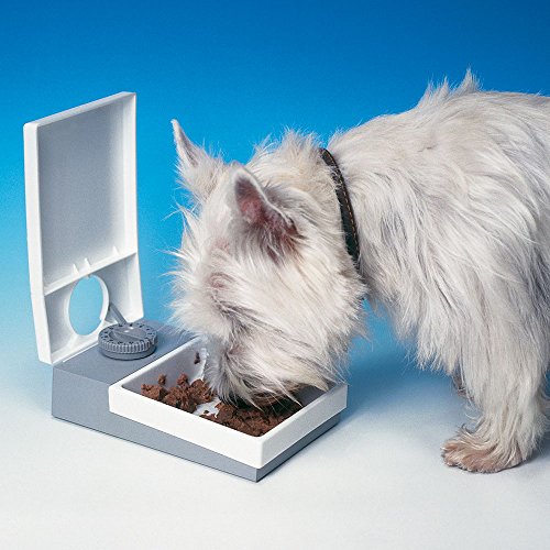 -. Feature : Serves one meal at any selected time up to 24-hour later / 1-Pound food capacity / Quartz timer / Dishwasher proof bowl