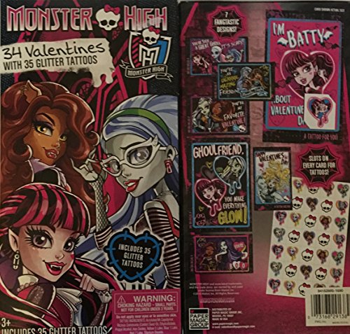 Monster High Valentines with Glitter Tattoos ~ 34 count ~ 1 box