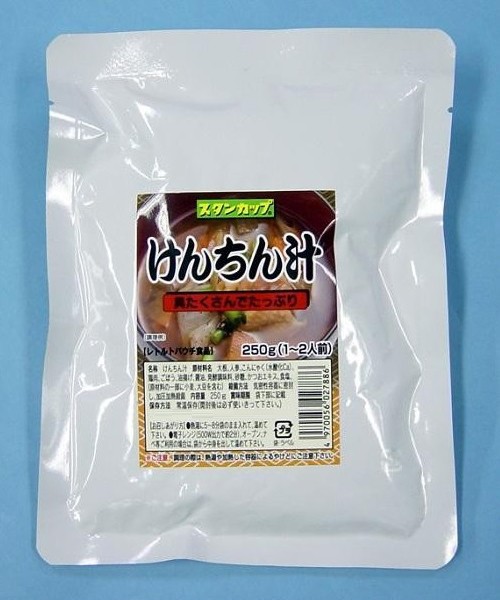 | 原材料 | 大根(国産)、人参(国産)、こんにゃく(水酸化Ca)(国産)、鳥肉(ブラジル産)、ごぼう(国産)、油揚げ(国産)、醤油、発酵調味料、砂糖、かつおエキス、食塩 (原材料の一部に小麦、大豆を含む) |