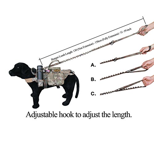 Specifications: Retractable: Yes Bungee Leash Length: 130 -59.06" / 51 -59 inch (Stretched) Width: 0.98" / 1 inch Handles: two handles for different purposes Main Material: 1000D Nylon EVA Padded control handle Hook: included Functions: Strong, Durable, Breakaway, Quick Release Applications: Busy street, sidewalk, casual walks,wild, extended sniffing, etc. Package Included: 1x Training Tactical Dog Leash 0 |