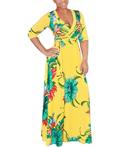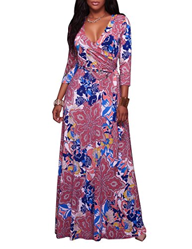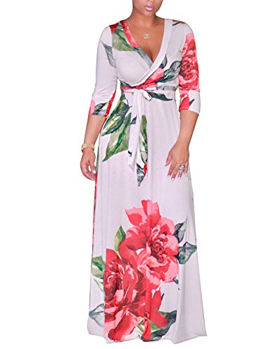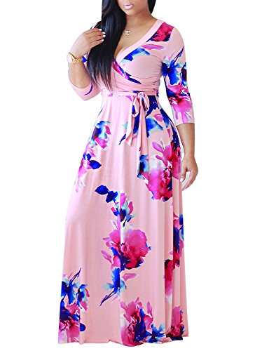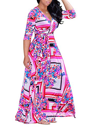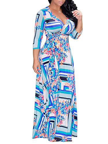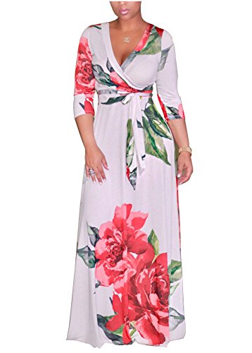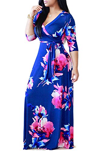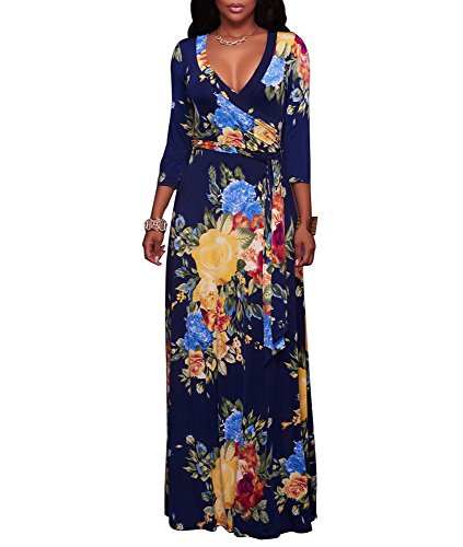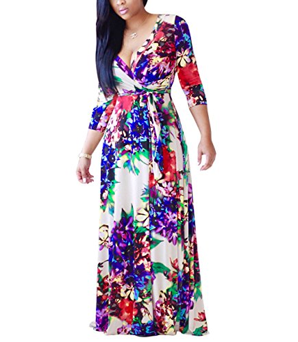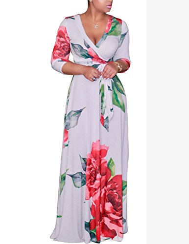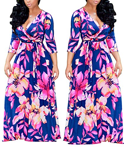 The size may have 2-3cm differences due to the maunal measurement. 2017 HOT SALE shekiss Women's Sexy Deep V Neck Dress Floral Print Loose Casual Long Maxi Multicolour Outfit