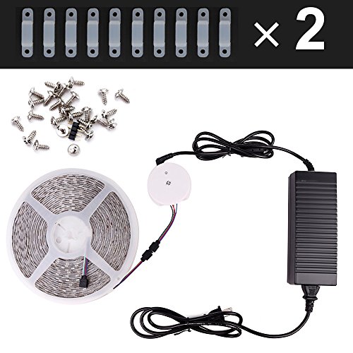 - 1. All in one kit: 32.8ft/10M RGB Led strip light + Bluetooth controller + Power adapter + 20 Buckles + 40 Screws