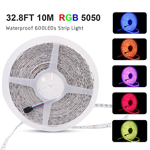 Korjo 32.8ft (10m) Bluetooth LED Light Strip 600 LEDs RGB APP Controlled Lights 5050 Waterproof LED Strip Light Kit with 24V 5A Power supply & Bluetooth Controller for iPhone Andriod