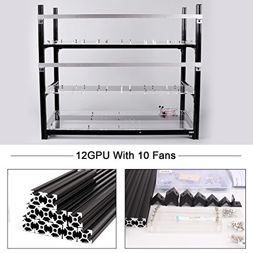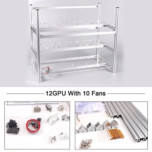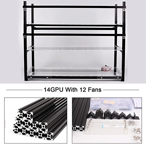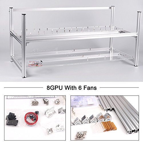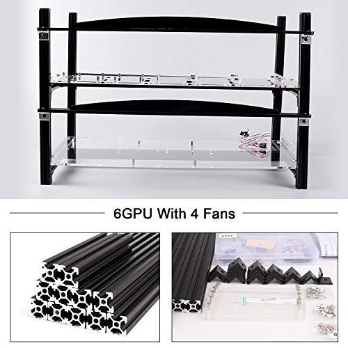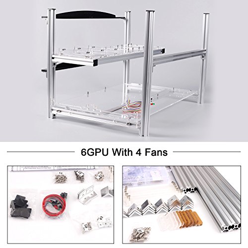 6 GPU Mining Aluminum Case Rig Open Air Frame for Crypto Coin Currency standard aluminum alloy profiles, strong and durable, full protection of graphics cards and electronic devices, can be firmly superimposed