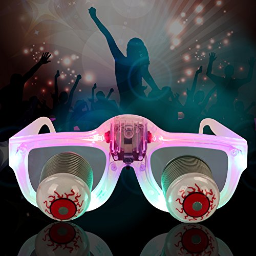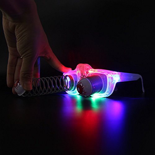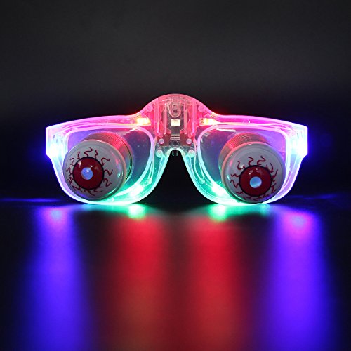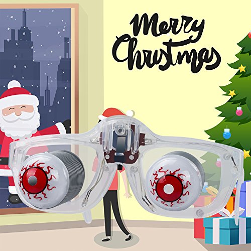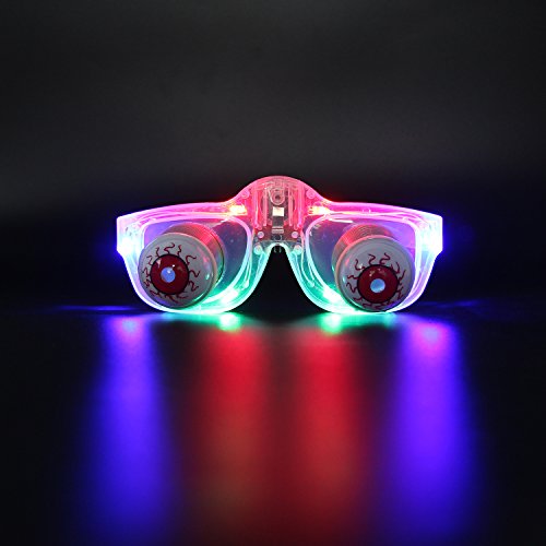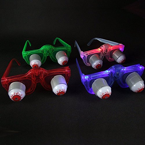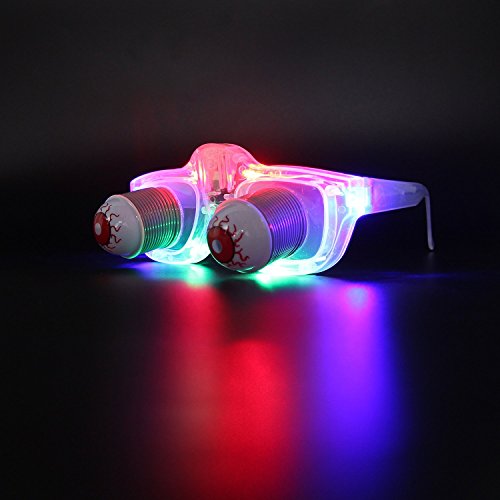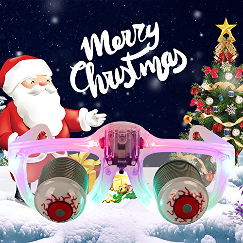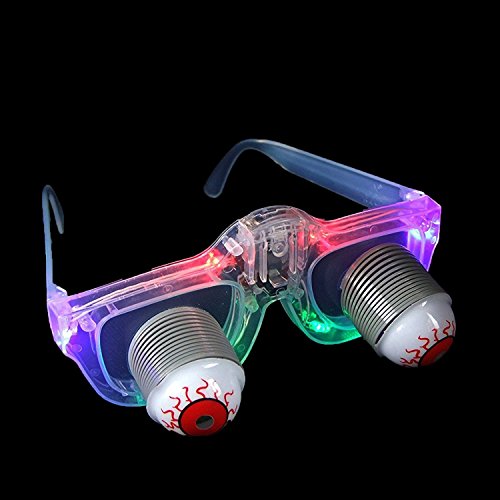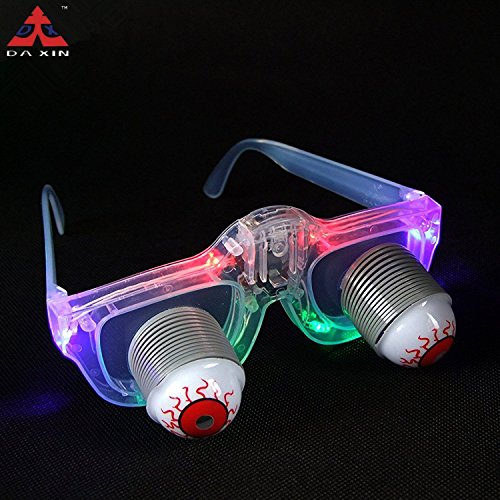 Features: This is a popular children party glasses, it is the best gift for the child. Glasses transparent, the eyeball can be stretched out, with this pair of novel space glasses to play, fool your friends. The spring part of the eyeball is plastic, which reduces the weight of the glasses and can be used for longer periods of time Hidden battery packs and switch labels make glasses not only beautiful but also easy to use. LED lights scattered throughout the frame, "Loop flash - Fixed flash - Irregular flash", press the button to switch the light mode. To turn on the lamp, you need to remove the insulation sheet, and then press the switch button on the battery compartment to switch the lighting mode. Flash glasses turn off the lights during the day, as a stupid toy. Night, when your child open the LED lights in the party, it becomes humorous toy glasses. Color LED lights can enhance the Birthday party, Christmas, Halloween, New Year and other festive atmosphere, the children are absolutely love them. The joy of the child is the greatest satisfaction of the parents, DAXIN flash eyeball glasses can help you achieve!