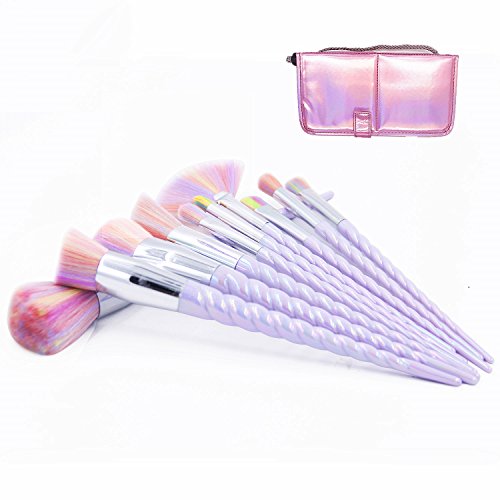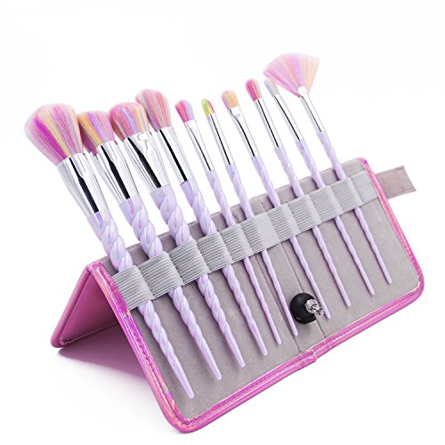 Ksun Pink Unicorn Hair Brush Cute Korean Cosmetics 10 Pieces Professional Rainbow Unicorn Makeup Brushes Set With Case(10Pcs)
