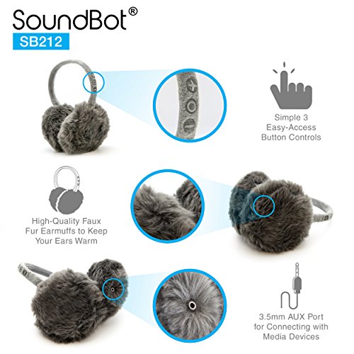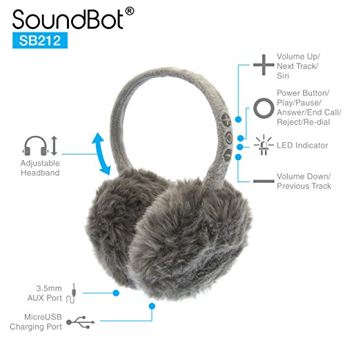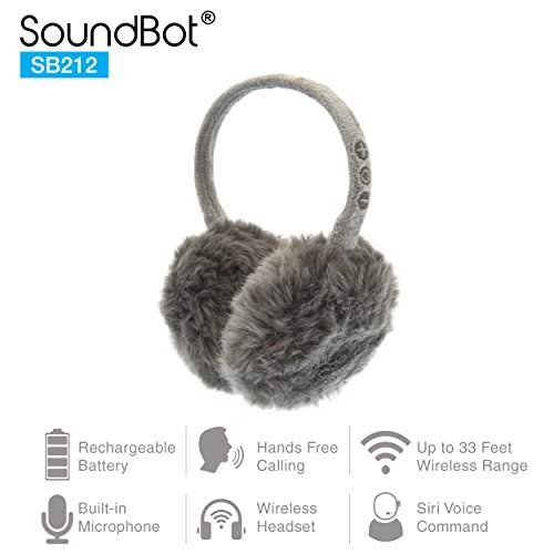SoundBot SB212 HD Stereo Bluetooth 4.1 Wireless Musical Earmuffs Headphone,Up to 5 Hrs of Play Time, Up to 8 Hrs of Talk Time,60 Hrs Standby Time, Build-in Mic (GRY)