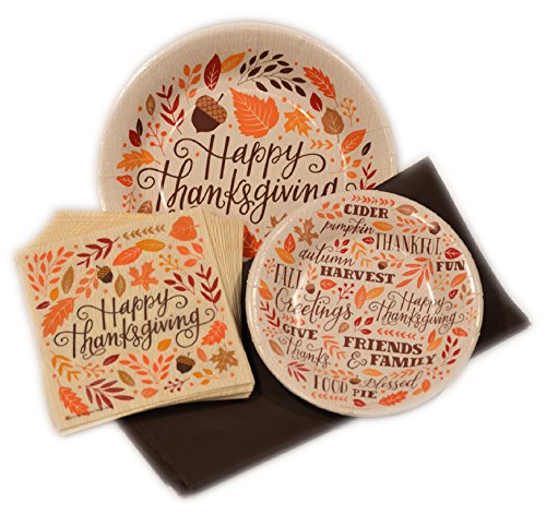 Product Description QUICKLY AND EASILY GET YOUR THANKSGIVING DINNER GOING FOR YOU AND YOUR FAMILY WITH THESE HAPPY THANKSGIVING FALL DISPOSABLE DINNER AND DESSERT PLATES AND NAPKINS! THESE FUN COLORFUL AND STURDY PAPER PLATES FOR PARTIES HELP YOU TO FEEL MORE AT EASE KNOWING THAT PEOPLE CAN PILE THE TURKEY AND GOODIES ON THEIR PLATES AND NOT WORRY ABOUT THE THANKSGIVING DISPOSABLE TABLEWARE CAVING IN! THESE ELEGANT STURDY DELUXE HAPPY THANKSGIVING PAPER PLATES WITH LEAVES ARE PERFECT FOR YOUR THANKSGIVING TURKEY GATHERING! ENJOY MORE TIME SOCIALIZING OR SLEEPING WITH YOUR DISPOSABLE PAPER PLATE BUNDLE OR FALL THANKSGIVING PARTY PACK SUPPLY! CLEAN UP IS A CINCH WITH DISPOSABLE FALL THANKSGIVING AUTUMN HARVEST DINNERWARE! THE DISPOSABLE FALL HARVEST THANKSGIVING PARTY SUPPLIES ARE GREAT TO CELEBRATE WITH! GRAB ONE TODAY FOR YOUR THANKSGIVING PARTY! 0