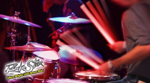 Drummers do not have to hide in the dark corner anymore. Glo Drumstix is all you need, if you really want to show off. Glo Drumstix are suitable for amateurs and professionals. Every time when you tap the Glo Drumstix they emit a brilliant glow of Red light. The light fades on and off very quickly to be ready for the next tap, thanks to the highly sensitive built in sensor inside the Glo Drumstix. No switches, controls or wires to get in the way - the light fades on and off every time you tap the stick. Professional grade stick constructed from Lexan plastic for optical clarity and superior durability. Screw cap at the bottom to replace batteries.Feature