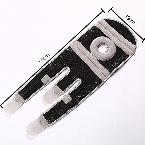 -. Feature : Fully Adjustable for Good Fit & Comfort - Velcro straps are adjustable so the brace fits to your own unique shape to provide the right level of support and compression required. This also means they tend to stay in place better than pull up sleeve braces. / Open Patella Wraparound Allow the Knee to Breathe - Has a hole at the front which reduces pressure on the kneecap which can be helpful when there is pain at the front of the knee. Ideal for tender, swollen or injured knees with a quick, easy application. / Provides Great Support and Compression - Made of stronger materials, it retains heat which increases the circulation to the knee which can help to promote healing, support the muscles and ligaments by providing compression to the knee. Perfect for moderate levels of support & for reducing forces through the knee. / Important Note: The difference of the right knee brace and left knee brace is the direction of the adjustable Velcro Straps,the strap of the right knee brace is toward right; However,the strap of the right knee brace is toward right.Please check measurement on the detail paga before purchase. / One Size .Special used for Hiking,Running,Jogging,Sports