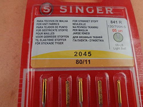 -. Title : Genuine Singer Ball Point (Style 2045) Needle Flat Shank Yellow Band Size 80/11 5-pack