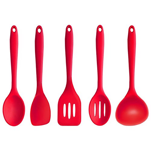 -. Title : Silicone Kitchen Utensil 5 Piece Cooking Set - Turner, Spoonula,Spoon,Slotted Spoon,Ladle, Easy to Use & Clean