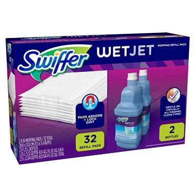 Studio : Swiffer Publisher : Swiffer Product Description Swiffer WetJet Multi-Purpose Cleaner Solution reveals a virtually streak-free shine. It dissolves tough, greasy and sticky dirt and has the Open Window Fresh scent to leave your house smelling clean. It dries fast with virtually no streaks or residue. The Swiffer Wetjet super-absorbent pads trap and lock away dirt in its core, cleaning and absorbing messes. When you're done, just remove the pad and throw it-and all that dirt-away forever. 0
