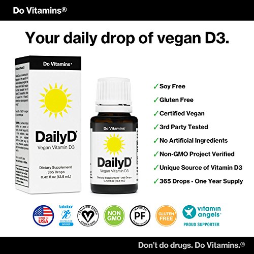 -. Feature : ALL YEAR AROUND - DailyD Vegan Vitamin D3 Formula by Do Vitamins includes a full year's worth of high quality, bio-available Vitamin D 3 supplements for vegans! That's 365 Vegetarian Capsules to ensure you receive your daily dose of sunshine year-round. / PLANT DERIVED - DailyD Vitamin Supplements are made with Vitashine® - a plant-derived Vegan D3 made from Lichen Extract. / SAME AS THE SUN - DailyD® contains the most bioavailable form of Vitamin D - Cholecalciferol - which is the same form of Vitamin D obtained from exposure to sunlight. / SHARE THE SUNSHINE - Do Vitamins® has partnered with Vitamin Angels®, so that for every bottle of vegan vitamins we sell, a child in need will receive vitamins for one year. A year of D3 for you, a year of vitamins for a child in need. / CERTIFIED CLEAN - 3rd Party Tested, Certified Vegan, Non-GMO, Manufactured in strict compliance with Good Manufacturing Practices (GMP) in the USA. 2500IU per vegan capsule for daily use.