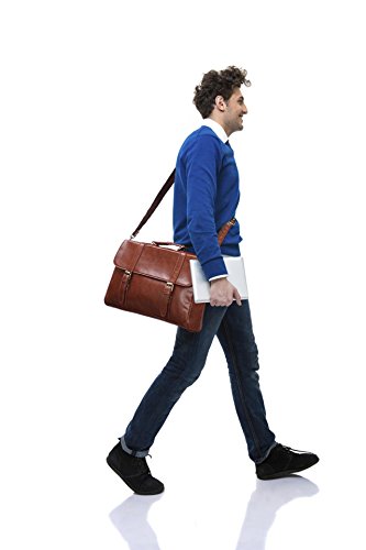 -. Title : Vintage PU Leather Briefcase Flap-Over Laptop Messenger Bag With Handle Brown Fit 15'' Laptop