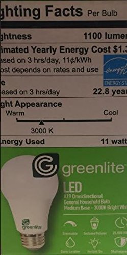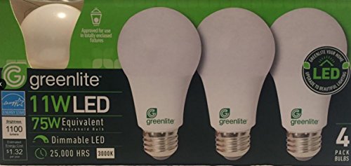 Greenlite - 4 Pack - 11W LED Bulb 75W Equivalent - Dimmable A19 3000K Bright White
