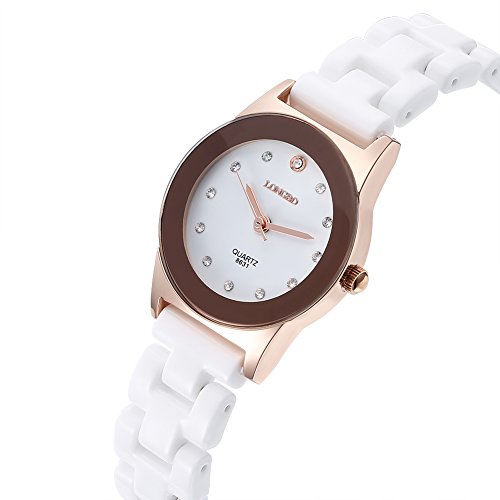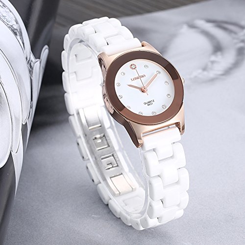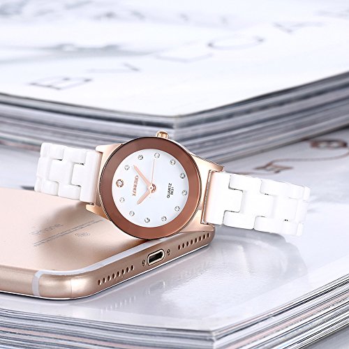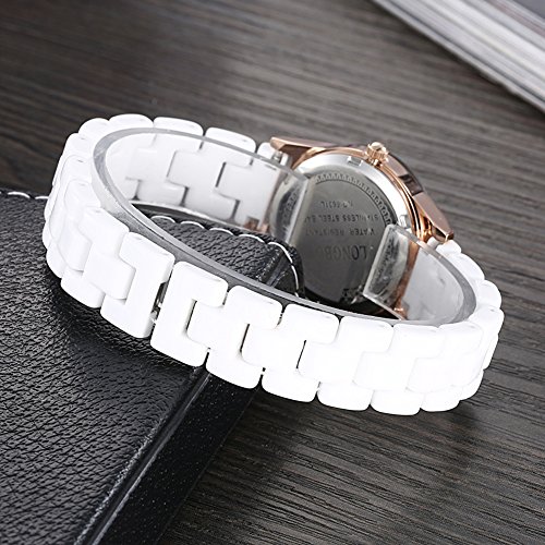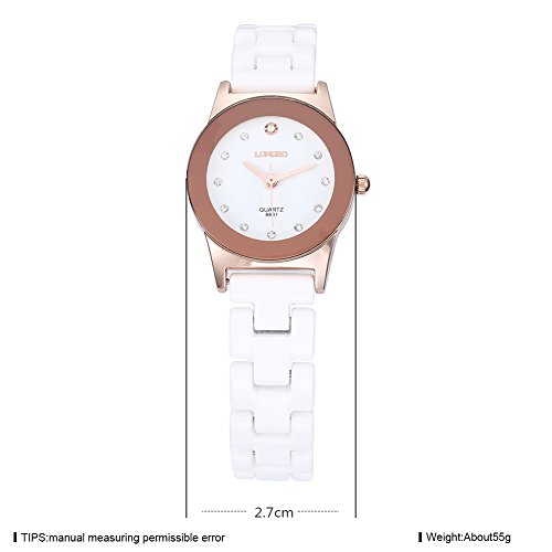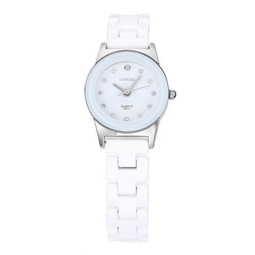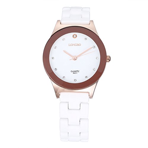 LONGBO Rockyu 감정 브랜드 인기 손목시계 맨즈 스트리트 30M 방수 레이디스 시계 일본제 쿼츠 화이트 사파이어 유리 스테인레스 화이트 세라믹 밴드 [병행수입품]