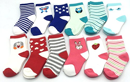 LUXEHOME (YR1602) Baby Toddler Cartoon Cotton Socks,12 Pairs per Package Spring Style