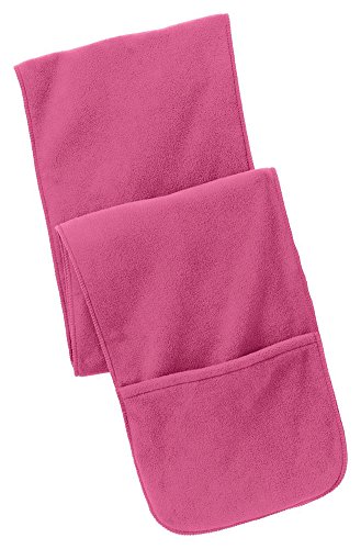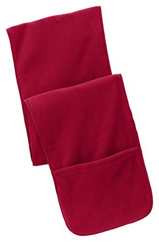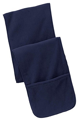 Product Description This scarf does more than keep you warm--it has two 9-inch deep pockets to hold your cell phone, keys, coins and more. | 100% polyester fleece Anti-pill finish for lasting wear Dyed-to-match overlock stitch Dimensions:80' x 10' 0