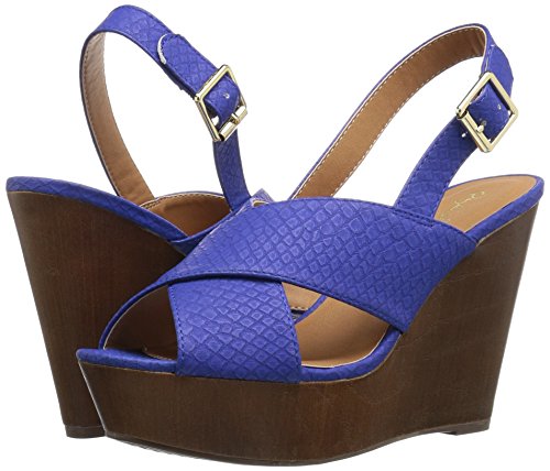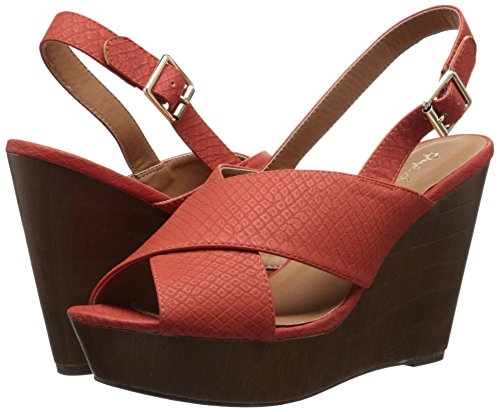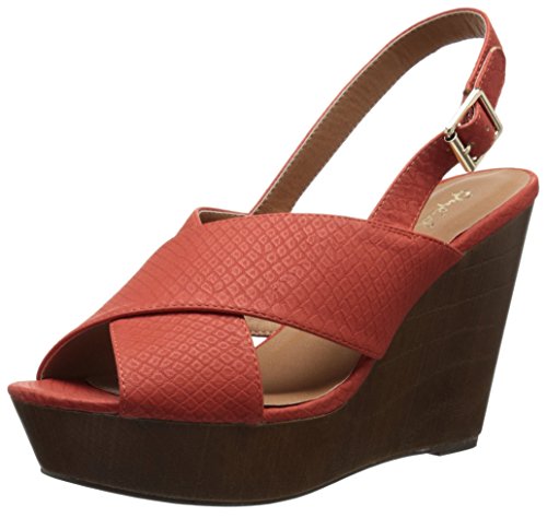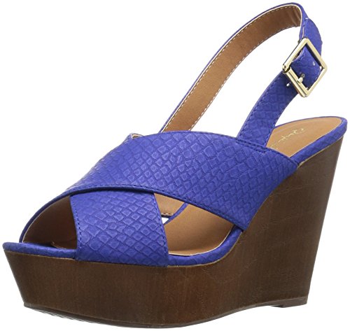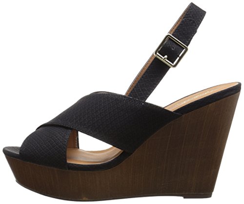 Product DescriptionX-band sling back faux wood wedge sandal0