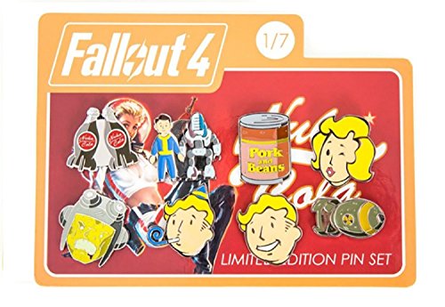 Binding : Apparel Product Description The first of seven Emoji Collectible Pin Sets includes a Vault Boy, Vault Girl, Mini-Nuke, Nuka Cola Bottles, Party Boy Perk, Pork and Beans, Protectron with Vault Dweller and Super Mutant! This set of 8 beautiful enamel pins is the perfect accessory for wandering about the wasteland (or a con). 0
