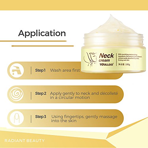 Directions: ToullGo Neck Firming Cream can be used day or night. For best results, first spritz Facial Toner on face and neck. While Facial Toner is still damp, apply a generous amount of ToullGo Neck Firming Cream to the contours of the chin, jawline, neck, and decolletage. Massage in circular motions, while making sure to apply on the back of the neck. Allow to absorb into skin. Ingredients: Water, Glycerol, Polydimethylsiloxane, Polydimethylsiloxane Alcohol, Polysorbate-20, Sodium acrylate / acrylated dimethyl taurate copolymer, Isohexadecane, Polysorbate-80, Carbomer, Triethanolamine, EDTA, Disodium, Peanethanol, Flavor, CI 19140 Safe Tips: 1. For external use only. Please store in a cool place. 2. Do not use this product if you are pregnant or nursing. 3. Do not apply to irritated or damaged skin. Avoid direct contact with eyes. 4. Patch test on skin before first use. 5. If skin irritation occurs, stop use. Keep out of reach of children and pets. 0