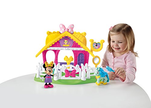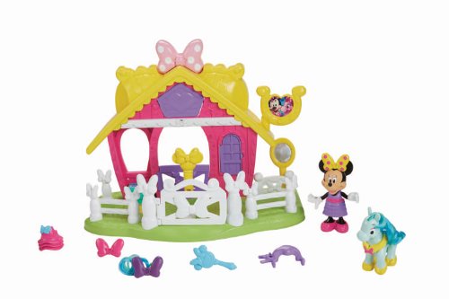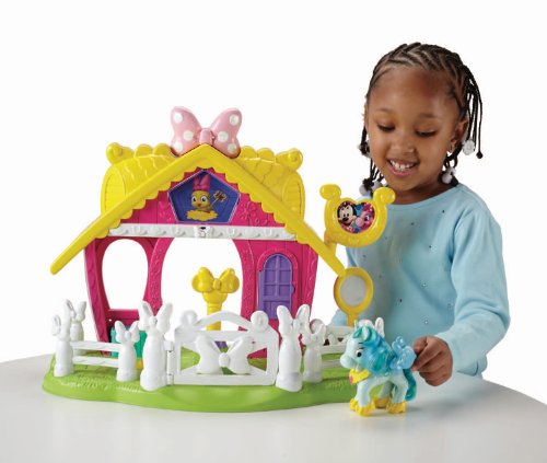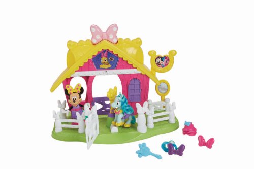 -. Feature : Minnie, Daisy and Pony can share and swap bows / Press the button to see Pony eat & drink / See the pony jump over the hurdle / Store Minnie's outfit change on the stable / A great addition to your Minnie Mouse collection