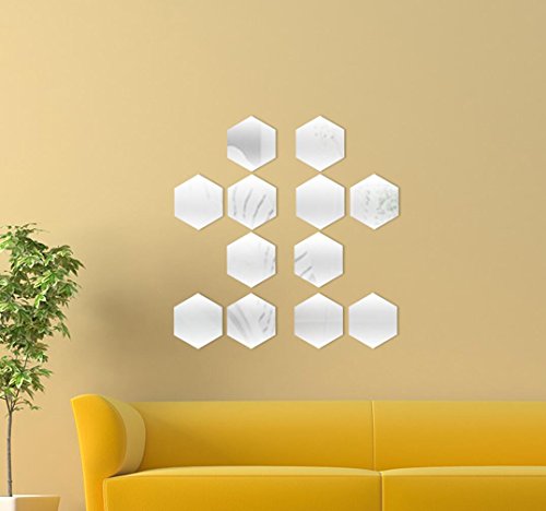 -. Title : Yusylvia 1set of 12PCS Hexagon Decorative 3D Acrylic Mirror Wall Stickers Living Room Bedroom Home Decor Room Decoration