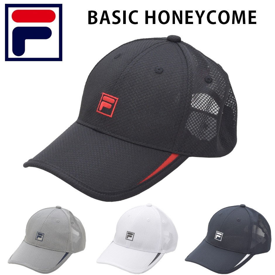 【ブランド名】FILA / フィラ【商品名】BASIC HONEYCOM MESH CAP【商品番号】100113405【サイズ】調節可能(頭囲57cm~59cm)【つば】約8cm【深さ】11cm【素材】ポリエステル100%※激サラッ AQUAHOLE 肌側へのベタ付き感を防止し、素早く乾燥します。熱中症、暑さ対策。【メール便不可商品】メール便不可商品ですので、メール便をご選択されても、宅配便にて発送となります。