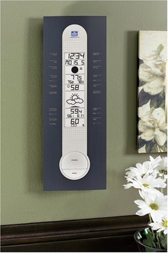 -. Binding : Kitchen -. Brand : La Crosse Technology -. Color : Blue/silver -. EAN : 0757456995878 -. Feature : Measures indoor/outdoor temperature and humidity / Weather tendency indicator forecasts weather 12 to 20 hours in advance / Displays precise time and date via atomic clock and current moon phase / Records minimum/maximum temperature and humidity readings for 24-hour period / One outdoor sensor included; base unit requires two AA batteries -. Label : La Crosse Technology -. Manufacturer : La Crosse Technology -. Model : WS-7390TWC -. MPN : WS-7390TWC -. PartNumber : WS-7390TWC -. ProductGroup : Home -. ProductTypeName : HOME -. Publisher : La Crosse Technology -. SKU : WEAWS7390TWC -. Studio : La Crosse Technology -. Title : La Crosse Technology Weather Channel WS-7390TWC Wall Hanging Wireless Weather Station -. UPC : 757456995878 -. Warranty : 1 year warranty