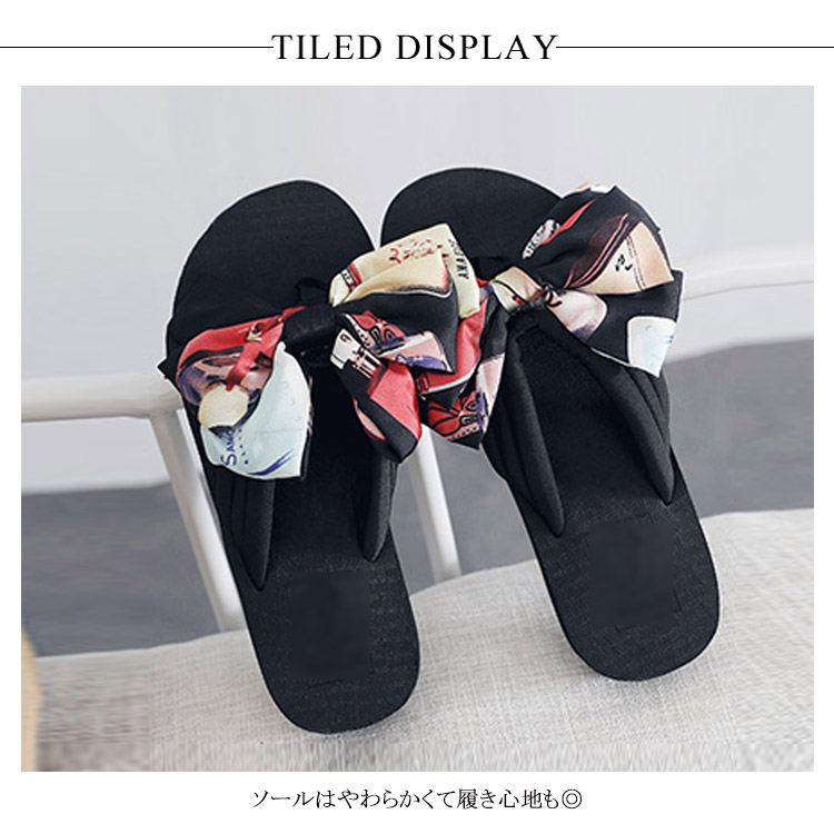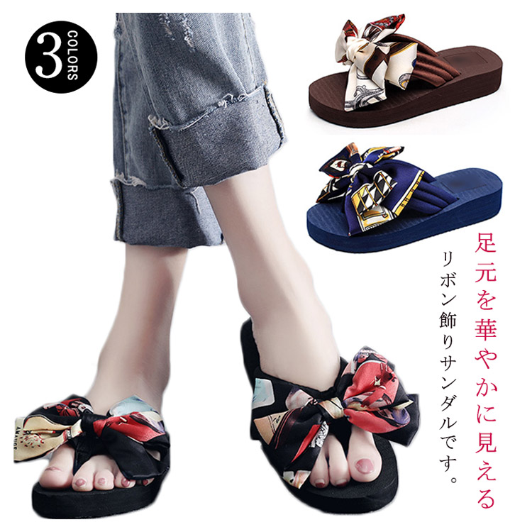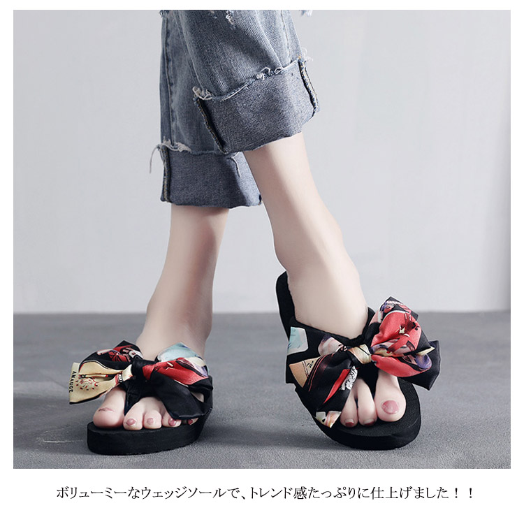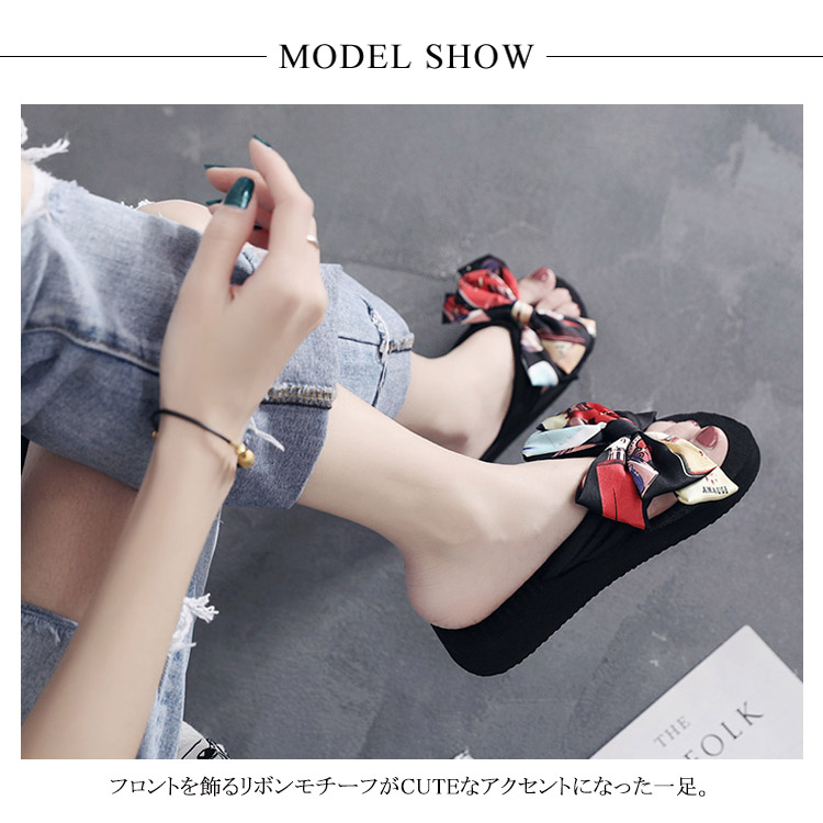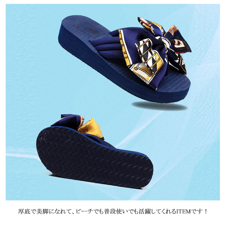 | 足元を華やかに見えるリボン飾りサンダルです。フロントを飾るリボンモチーフがCUTEなアクセントになった一足。ボリューミーなウェッジソールで、トレンド感たっぷりに仕上げました!!ソールはやわらかくて履き心地も◎厚底で美脚になれて、ビーチでも普段使いでも活躍してくれるITEMです! | |