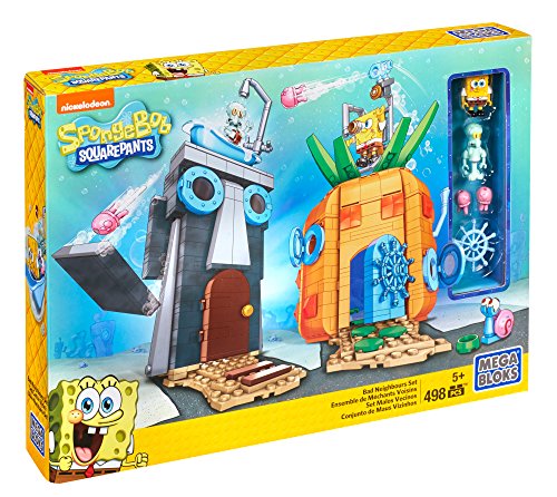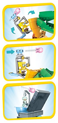 It's just a normal day in Bikini Bottom until SpongeBob misfires while testing out his powerful new patty launcher, accidentally breaking the front of Squidward's house! Squidward doesn't like being interrupted in the shower, but that's just what happens when you build the Bad neighbours set by Mega Bloks SpongeBob SquarePants. Put SpongeBob and Squidward's houses right next to each other for all kinds of neighborly nonsense. Move and open up the walls for inside play, or use the working patty launcher for lots of fun messing around! You can collect all the sets to build your own Bikini Bottom world! Ideal for ages 5 and up.Feature