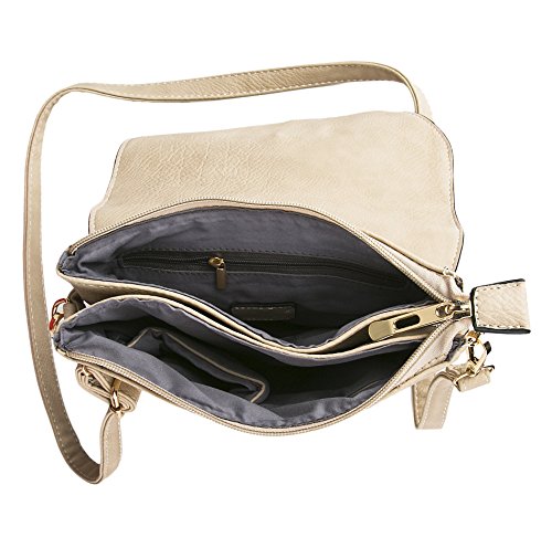 -. Feature : Multiple Pocket Crossbody bag / Crossbody Purse / The JASMINE Crossbody Bag is crafted out of high quality faux leather with fabric lining giving it durability for long lasting use / The Crossbody Bag features 2 exterior zippered front pockets, 1 exterior zippered back pocket, And 1 interior zippered pocket, Plus 2 Interior Pouches which gives you easy access at your fingertip to multiple pockets on handbag for comfort use. / The JASMINE crossbody Bag measures (9.5" W x 11" H x 3" D) making it the perfect sized 4 season crossbody bag for all your essential items on the go including your wallet, cell phone, keys and your passport while on the fly Making it the Perfect Crossbody Purse / Crossbody Bag / This Crossbody Purse comes with a removable shoulder strap adjustable to 48" length just go ahead and sling this lovely Crossbody Purse over your shoulder to add a trendy design look.