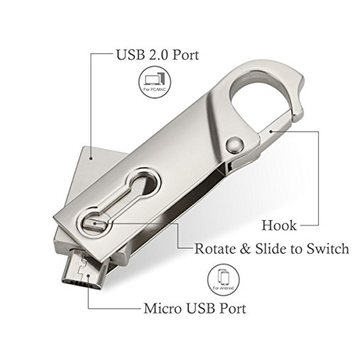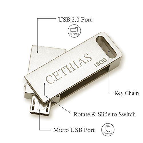-. Title : CETHIAS OTG USB Flash Drive 16GB, Metal hook On-The-Go 2 in 1 Memory Stick USB Flash Disk(Silver) Available for Android Smart Phone or Device Support