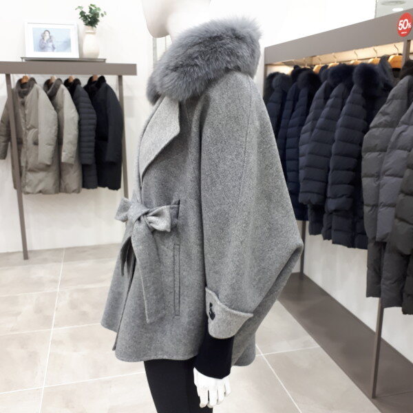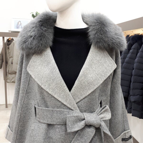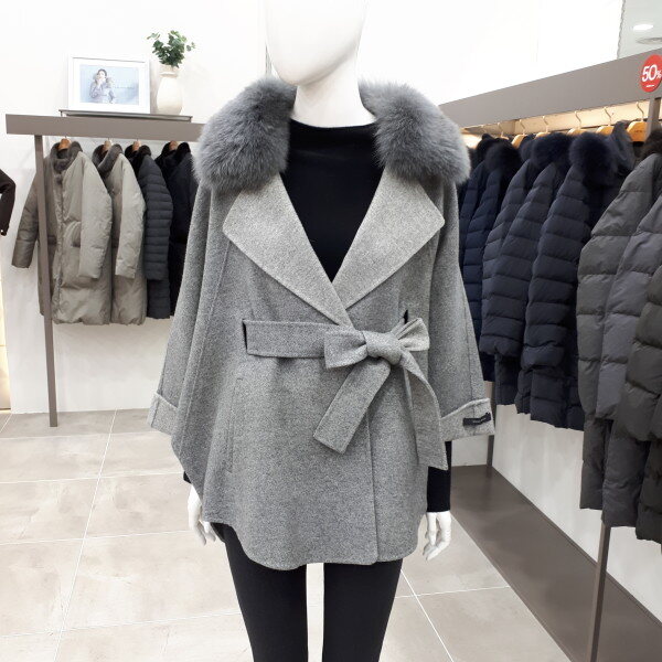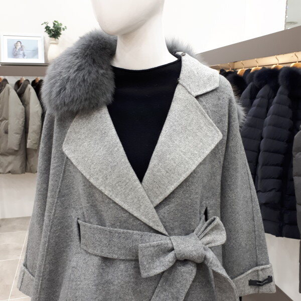 폭스카라가 탈착되는 모소재 케이프코트예요 뒤총장은 76cm 입니다