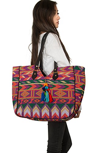 -. Feature : Authentic Fair Trade Product Handmade by Tribe Azure Artisans / Handmade from quilted woven cotton fabric. Double stitched and reinforced with metal clamps for lasting durability and strength. Straps are made from thick canvas cotton with soft cushioning for a comfortable carry. / Large, Roomy, Everyday Bag - Ideal for grocery, shopping, picnic, camping & more / Size: 20" length; 15" height: 6" width. Handle drops 12 inches. ***Model is 5ft 4 inches / Top zipper with Cotton lining