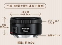 불과 160g이라고 하는 경량 콤팩트이다와,F1.8이라고 하는 밝기가 특징의 표준단 초점 렌즈입니다. EF50mm F1.8 II부터 정평이 있는 광학 설계를 계승하고, 디지탈 카메라 에서의 촬영에 적합했던 코팅을 채용 하고 있습니다. 또한조임을 5 매날개부터 원형 조임의 7매에 한 것을에,배경을 원형으로 아름답고 보까시(색의 농담의 경계를 희미하게 함),피사체를 두드러지게 하는 촬영 표현이 가능.APS-C크기의 CMOS센서를 탑재했 EOS시리즈에 장착한 경우에는,35mm판 환산으로 초점거리 이미지가 약80mm 상당히 이웃,초상화 촬영으로도 최적인 1개입니다.