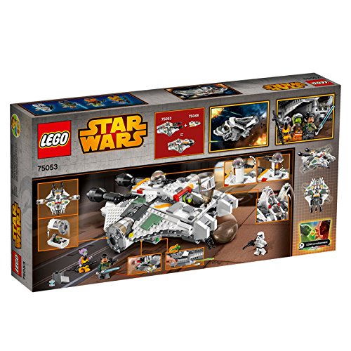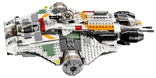 -. Feature : Enthält 4 brandneue Minifiguren mit passender Ausrüstung: Kanan Jarrus(TM), Hera Syndulla(TM), Zeb Orrelios(TM) und einen Stormtrooper(TM) / Mit 2 Cockpits (das vordere Cockpit ist abnehmbar) für Minifiguren, 360-Grad-Geschütz mit herausfahrbaren Kanonen, 2 federgeladenen Shootern, 2 abnehmbaren Fluchtkapseln, Ladeluke mit Griff zum Öffnen, Frachtcontainer mit einem Holocron, 2 Fächern für eine zusätzliche Rakete für den federgeladenen Shooter und ein Lichtschwert, 2 riesige Raketentriebwerke und Andockbereich für das Modell 75048 The Phantom (separat erhältlich) / Als Waffen sind ein Lichtschwert, Blaster, ein einzigartiges Bo-Gewehr und ein Blaster-Gewehr enthalten / Setze die Rebellen in die beiden Cockpits / Zeb hält Wache am 360-Grad-Geschütz
