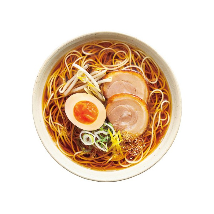 원재료:면(소맥분,식염,식물성 단백,환원 수 엿)고, 간장,식염,돈기름,단백 가수분해물,설탕,유즈 가죽(껍질) 분말(오이타현산)고, 치킨 엑기스,향신료,효모 엑기스,조미료(아미노산등)고, 주정,카라멜 색소,물어 들이마시고, 치자나무 색소,증점제(《구가무》)고, 감미료(스테 비어)고,(원재료의 일부에 대두를 포함한다)