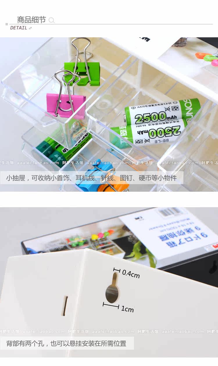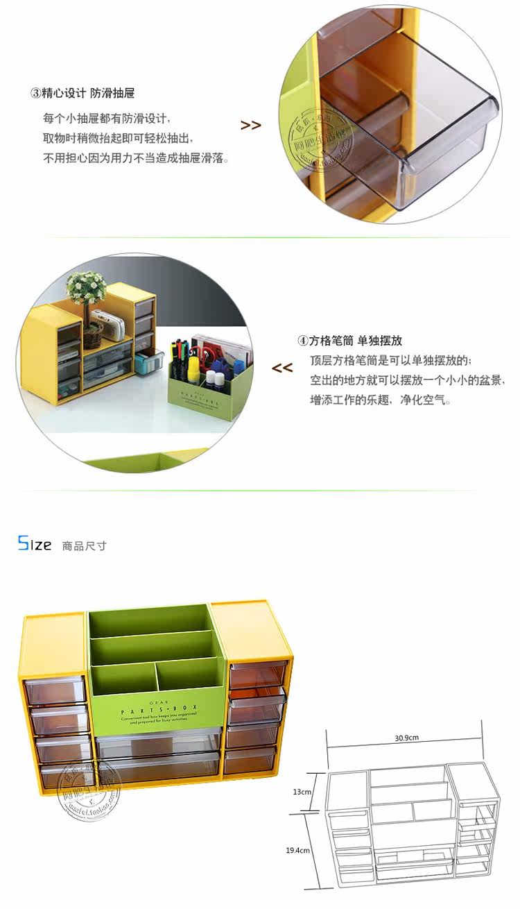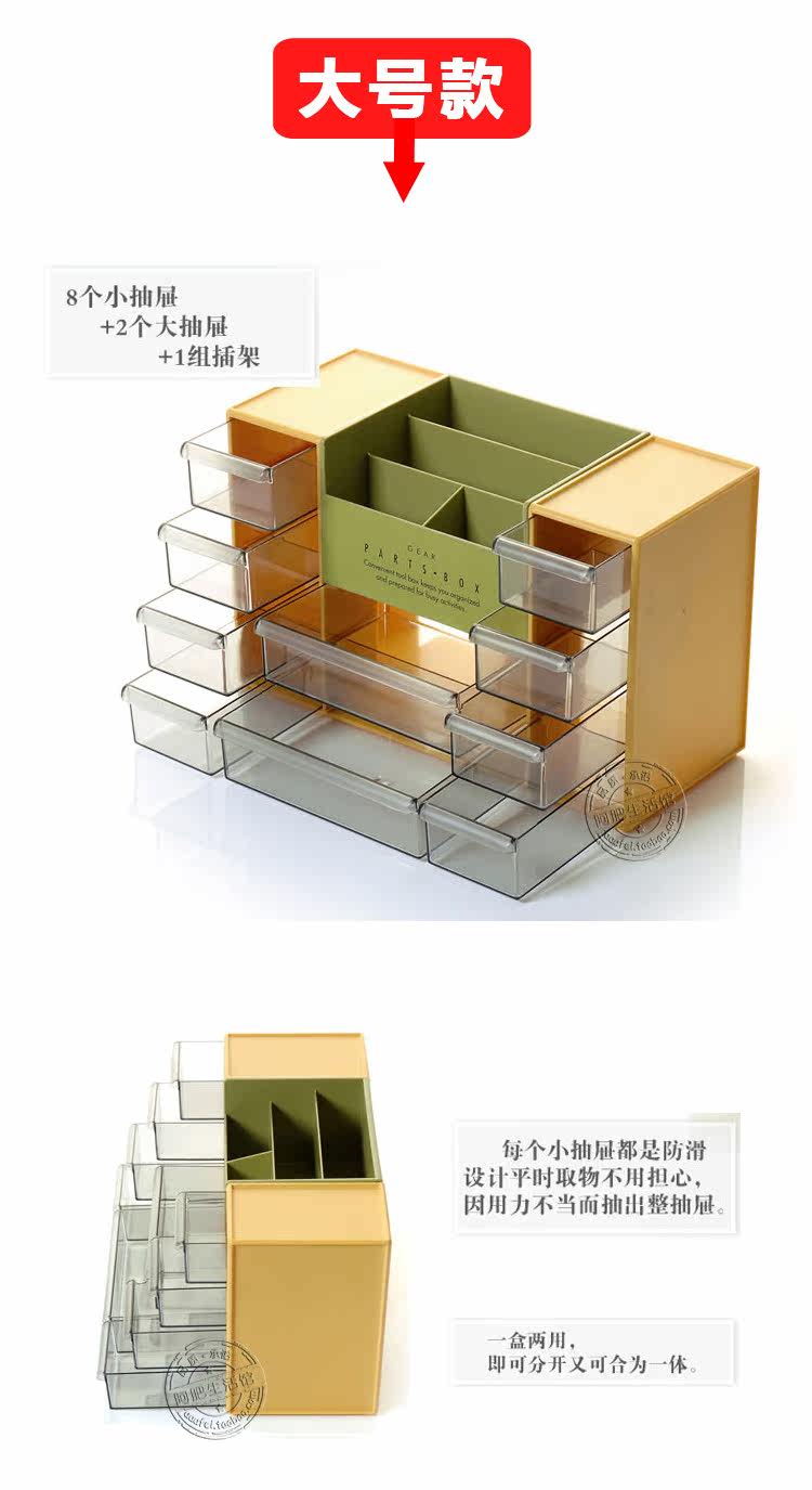 大号款:30.9*13*19.4cm,小抽屉6.7*11.7*4.3cm,大抽屉15.3*11.7*4.3cm