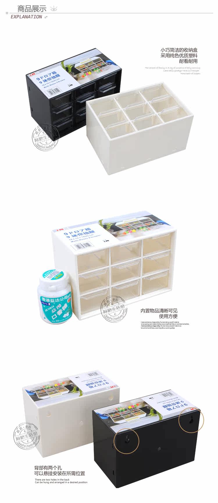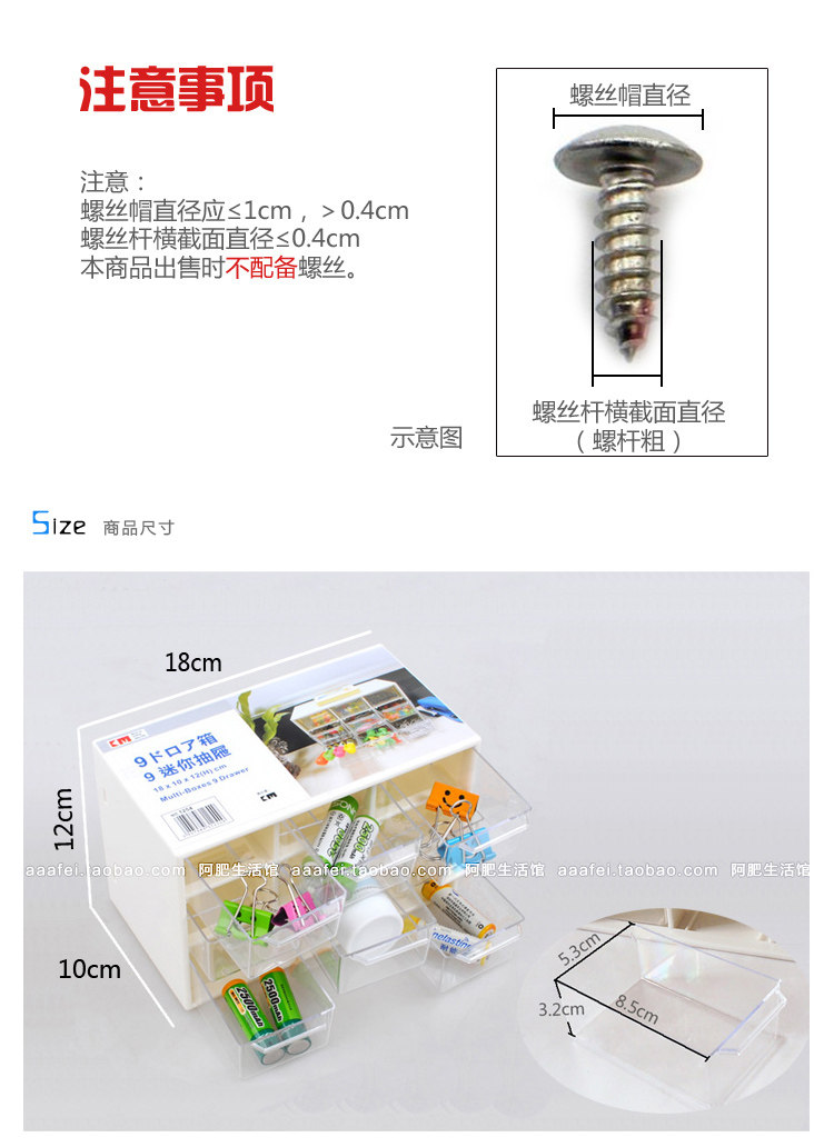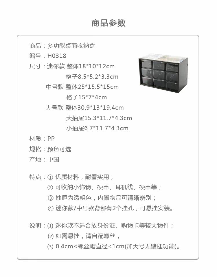 迷你款:18.3*10*12cm,透明抽屉8.5*5.2*3.3cm