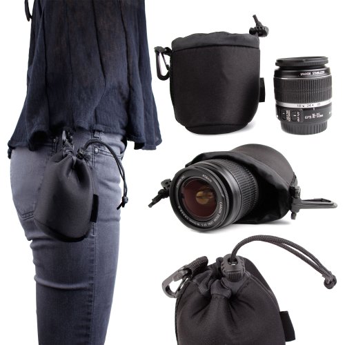 DURAGADGET블랙 묘화 문자열 렌즈 파우치for Olympus om-d em-1콤팩트 시스템 카메라,M.ZUIKO디지탈45?mm 1?: 1.8,M.ZUIKO DIGITAL ED 40???150?mm 1?: 4.0???5.6?R & M.ZUIKO DIGITAL ED 60?mm 1?: 2.8매크로에 수 저항 네오플랜