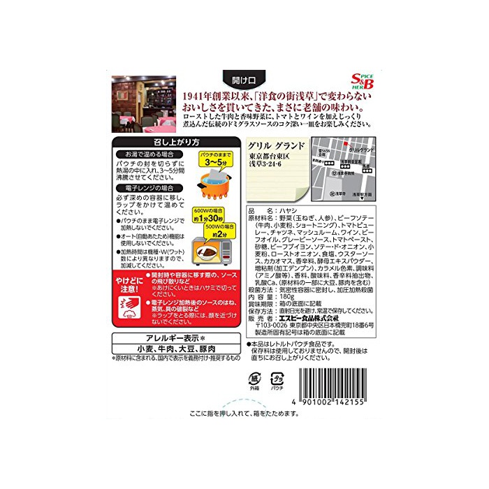 원본상품명: S&B ?の名店 ?草ハヤシビ?フ 180g×5個