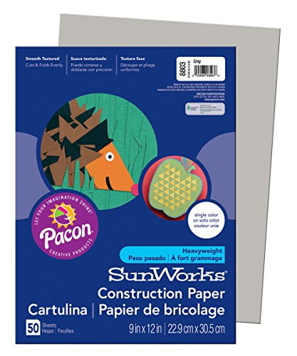 Pacon SunWorks Construction Paper, 9" x 12", 50-Count, Gray (8803)