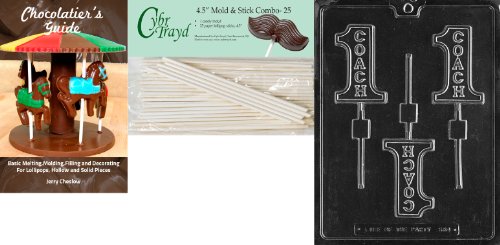 Cybrtrayd 'Coach Lolly' Sports Chocolate Candy Mold with 25 4.5-Inch Lollipop Sticks and Chocolatier's Guide