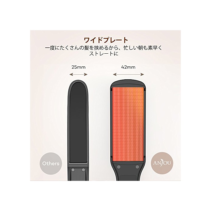 Anjou 스트레이트 아이런 헤어아이런(고데기) 와이드 플레이트 세라믹 프로 사양230℃ 11단계 온도 조정 해외 대응